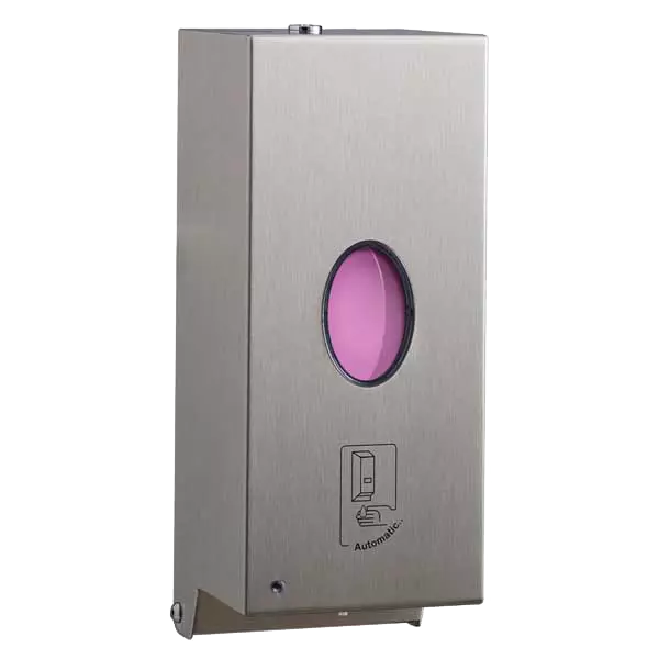 Dispensador de sabão B-2012 automático com 850ml (Sabão Líquido) da marca Bobrick. Em aço Inoxidável AISI 304, com acabamento escovado. Funcionamento: 3 Pilhas Alcalinas AA (1.5V).