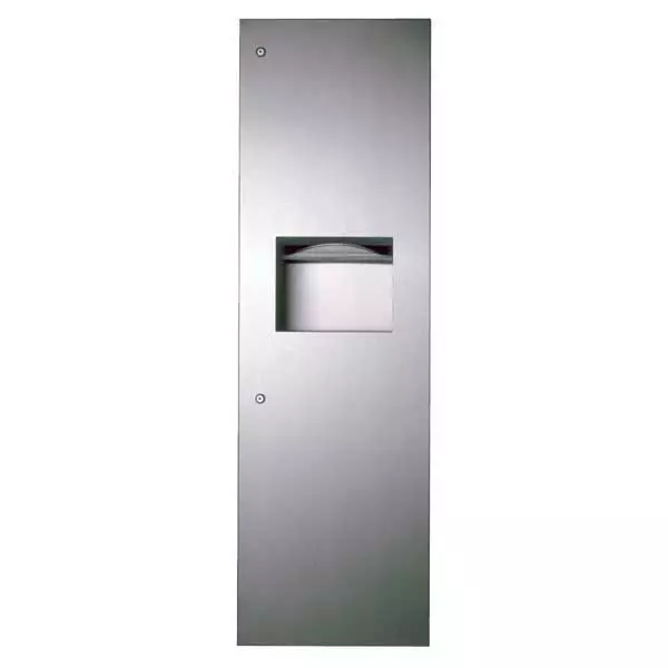 Dispensador de toalhas com papeleira B-39003 A papeleira tem 45,4L e é de encastrar, capacidade para 600 toalhas C, 800 em ZigZag, 1100 Simples da marca Bobrick. Aço Inoxidável AISI 304, acabamento escovado.
