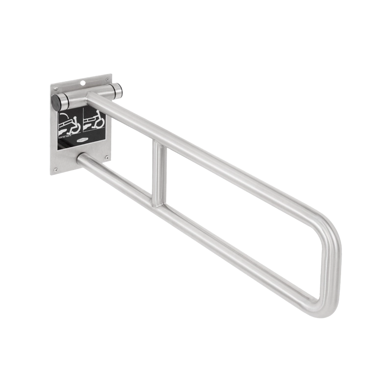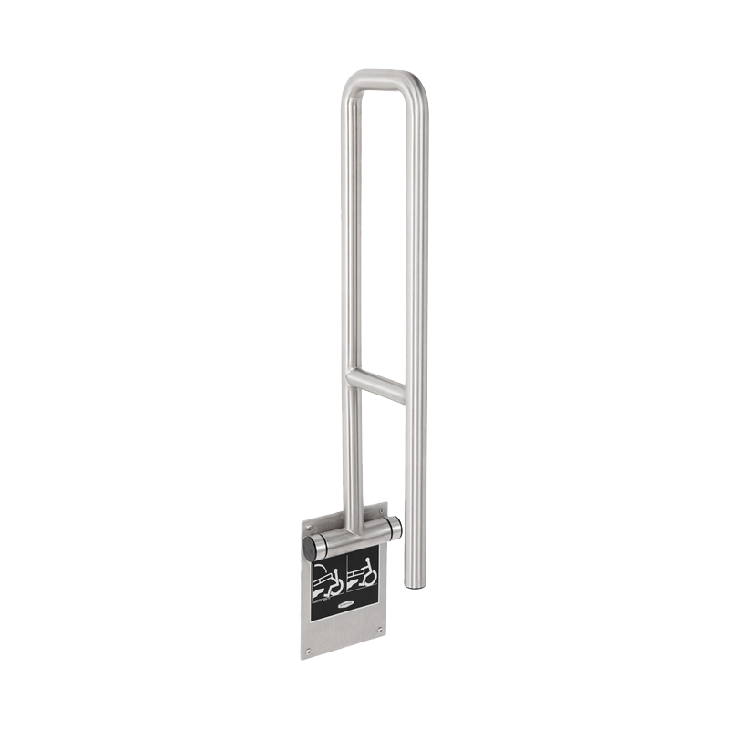 Barra rebatível vertical B-4998 construída em aço inoxidável tipo 304, com acabamento escovado da marca Bobrick. A barra terá uma espessura de parede de 1.2 mm e um diâmetro exterior de 32 mm.