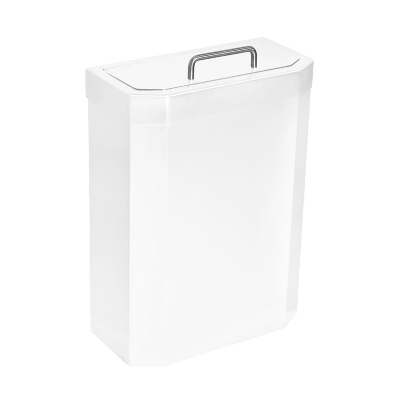 Contentor de higiene feminina PPA4010 de cor branca, de acionamento manual, com capacidade 10 L, indicado para instalações sanitárias de frequência de utilização muito alta e colectividades, concebido para eliminação discreta de artigos de higiene, impedindo a visualização do conteúdo através de um sistema de dupla tampa integrado no cabeçal ao levantar a asa. da marca Mediclinics.