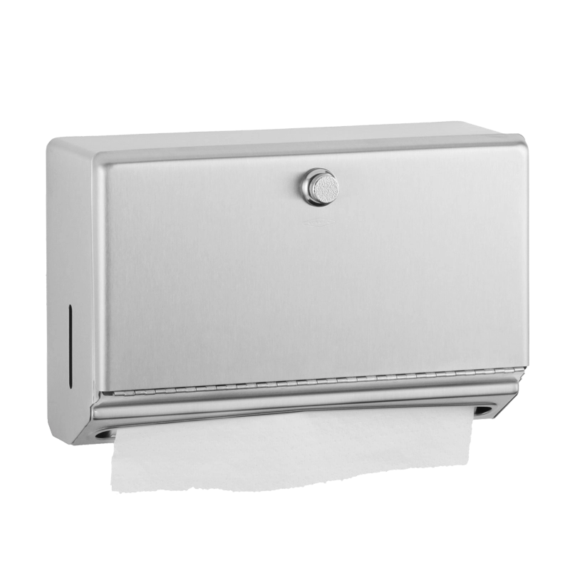 Dispensador de toalhas B-2621, para superfície em aço Inoxidável AISI 304, com acabamento escovado e construção soldada da marca Bobrick.