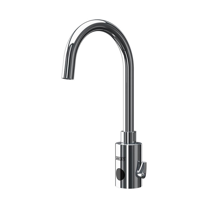 Misturadora automática SLU08LNB infravermelhos (9V DC), para água fria e quente regulável, da marca Sanela. Adequada p/ área de saúde; Anti-Vandálica. Cano 150 mm alt.