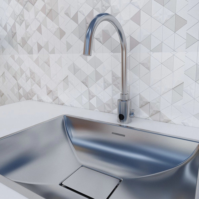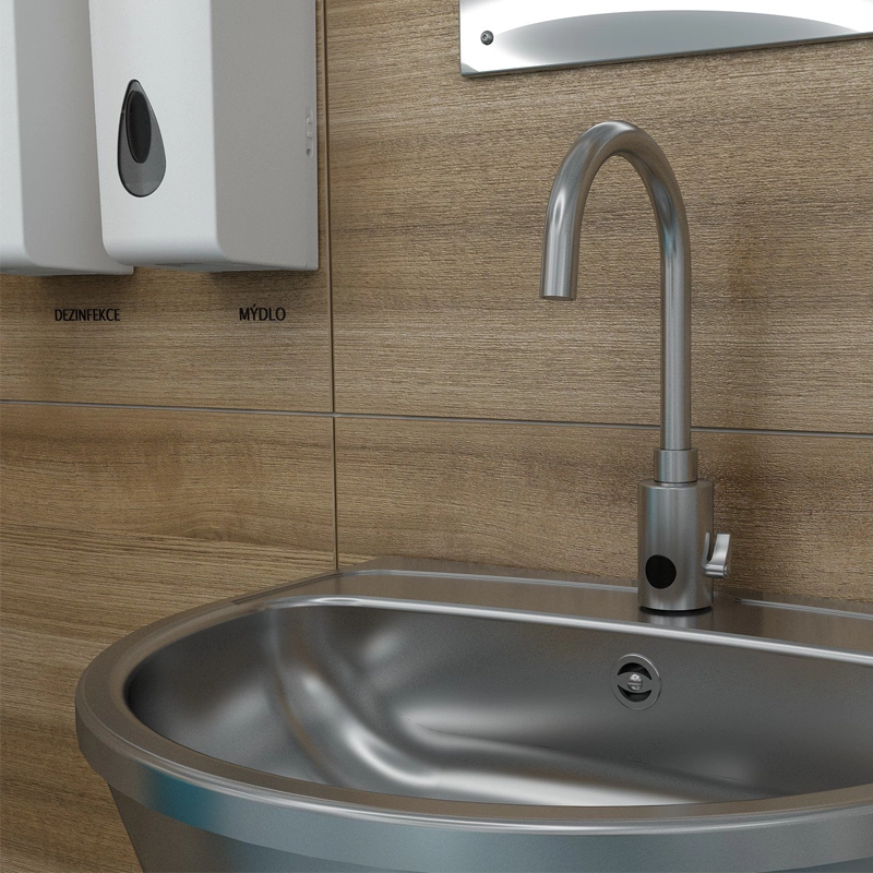 Misturadora automática SLU08LNDB com infravermelhos (9V DC), da marca Sanela, para água fria e quente, regulável. Adequada p/ área de saúde; Anti-Vandálica. Cano 195 mm alt.