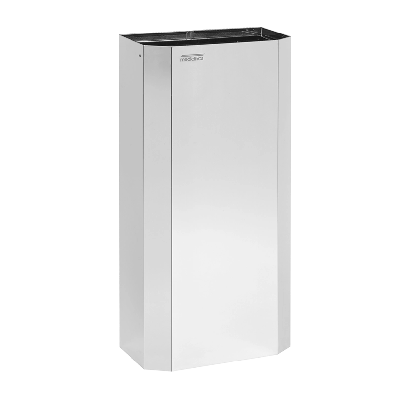 Corpo e base em chapa de 0,8 mm de espessura, com construção totalmente soldada, cantos biselados de traço contínuo, sem rebarbas nem zonas cortantes, com características anti-vandálicas, e capacidade 40 L.