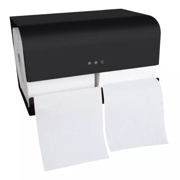 Contém dois rolos de papel higiénico padrão com diâmetro máximo de 125 mm.