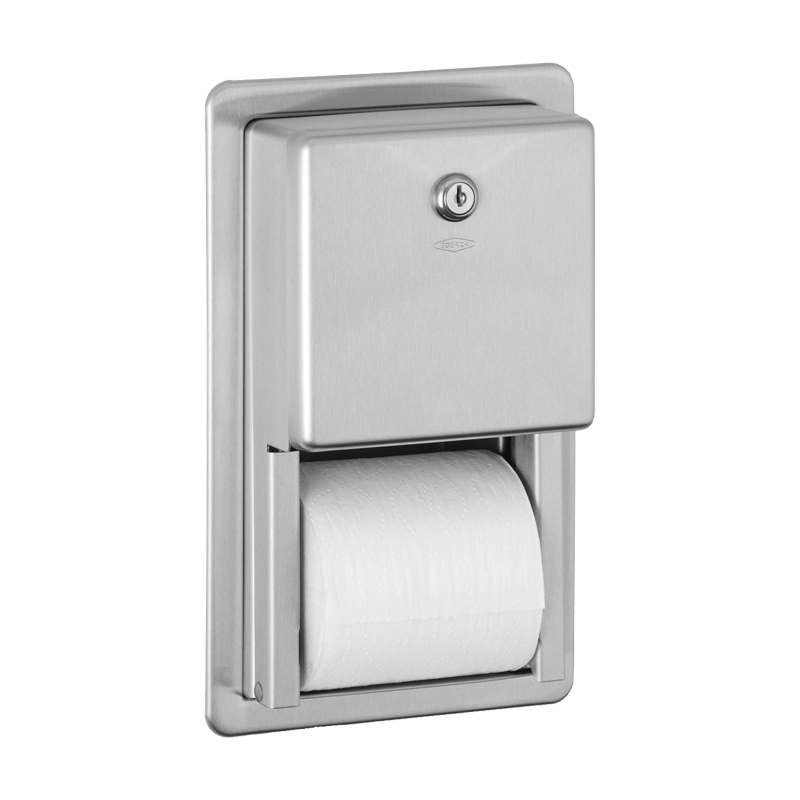 Porta rolos duplo B-3888, de encastrar, em aço Inoxidável AISI 304 com acabamento escovado da marca Bobrick.