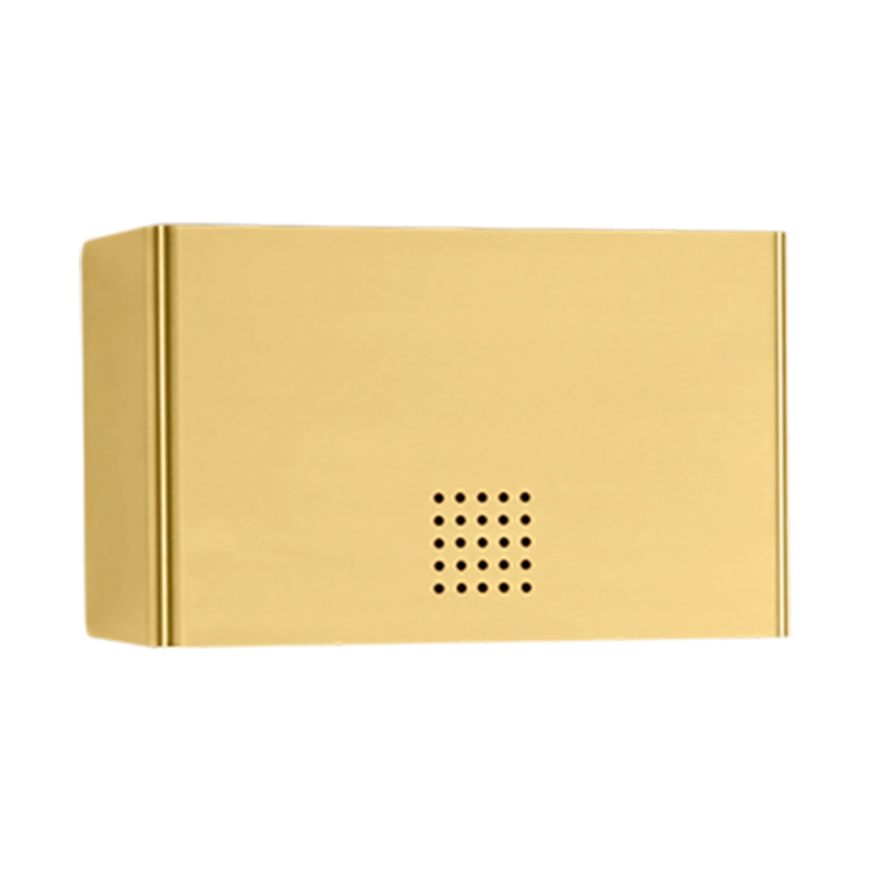 Secador de mãos ME010 na Proox em aço inoxidável com revestimento em PVD Latão/Ouro, potente para montagem na parede, com sensor optoeletrónico.