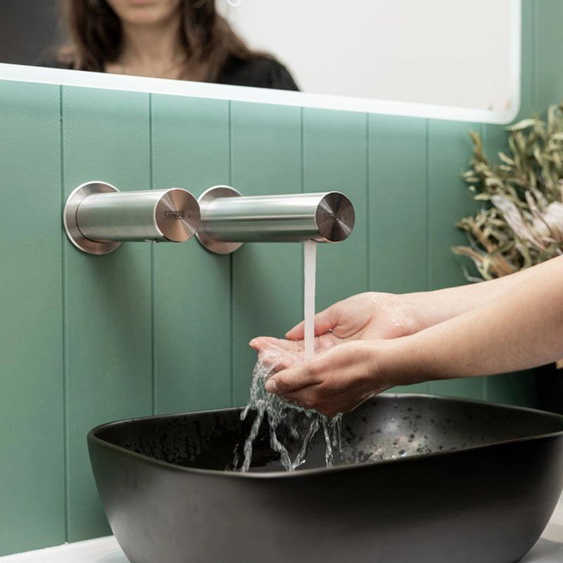 Torneira de parede SLU43B para água fria ou pré-misturada, 6 V destinada a água fria ou pré-misturada da marca Sanela. A água flui enquanto as mãos estiverem na faixa ativa e deixa de fluir após a remoção das mãos da área do sensor.
